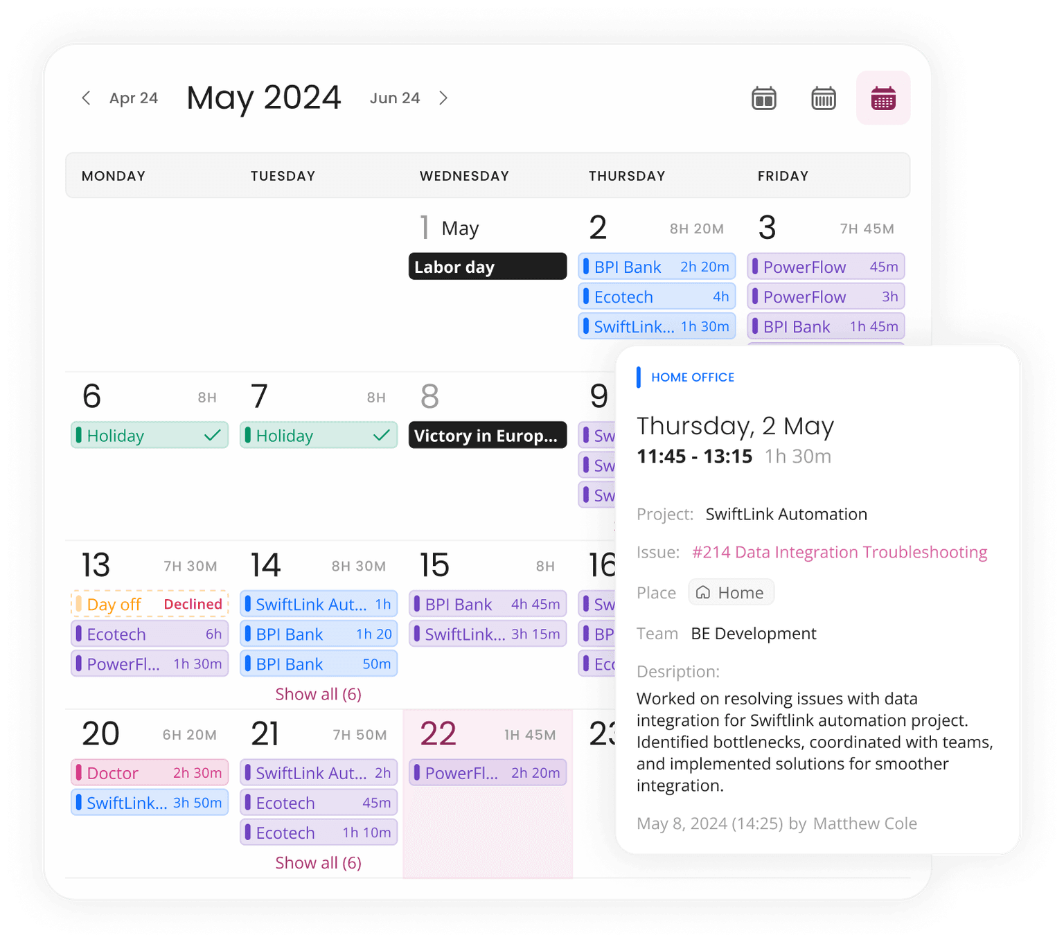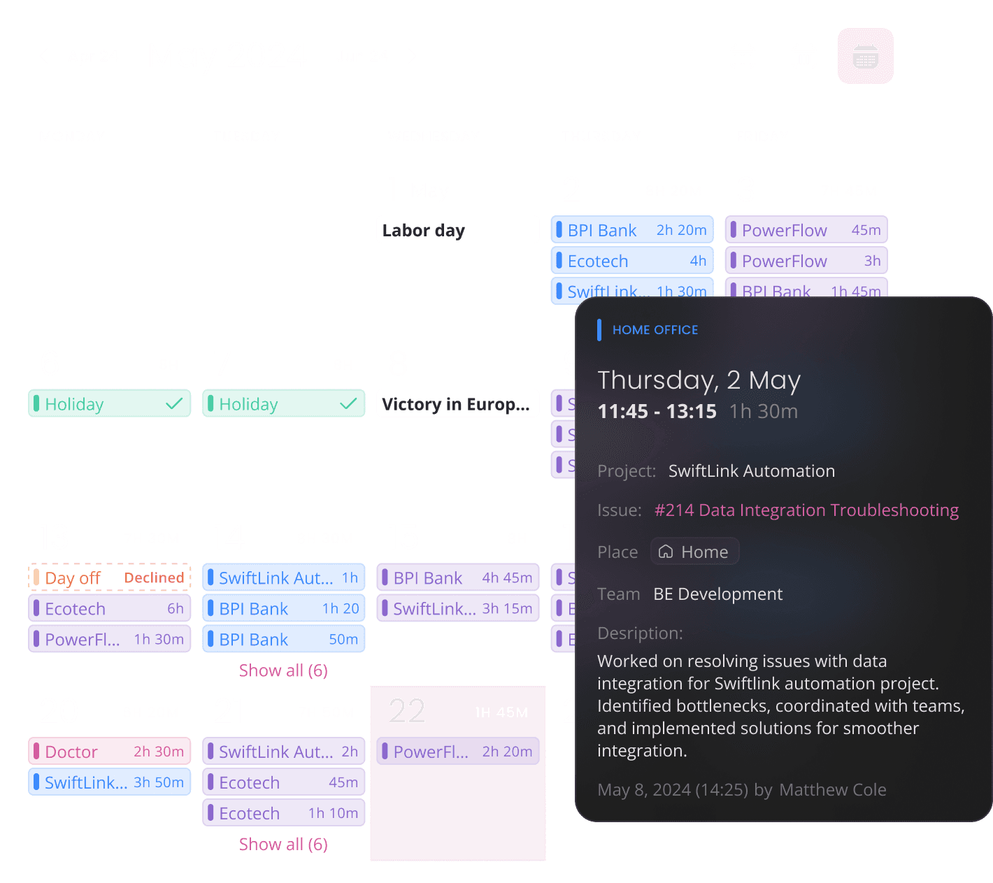 Effortlessly input your time data using our intuitive create modal. Say goodbye to timers and hello to precision. With our manual entry system, you have full control over the accuracy of your time records. Visualize the ease of data entry with our user-friendly modal interface.