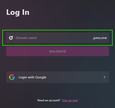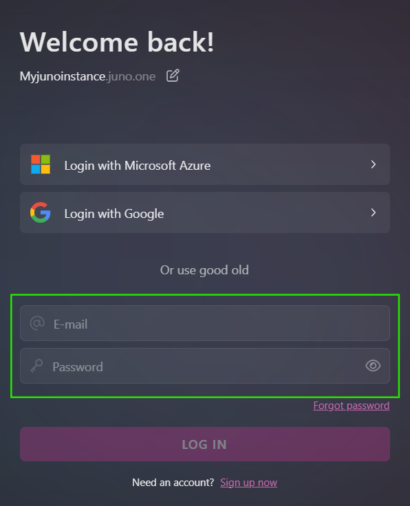 Or go to the URL https://mycompany.juno.one/login ("mycompany" is the name of your juno.one instance).