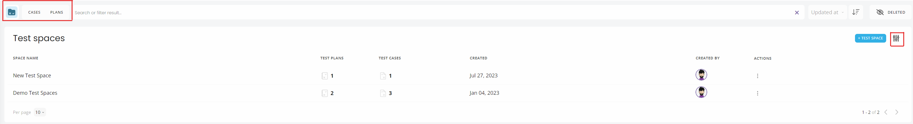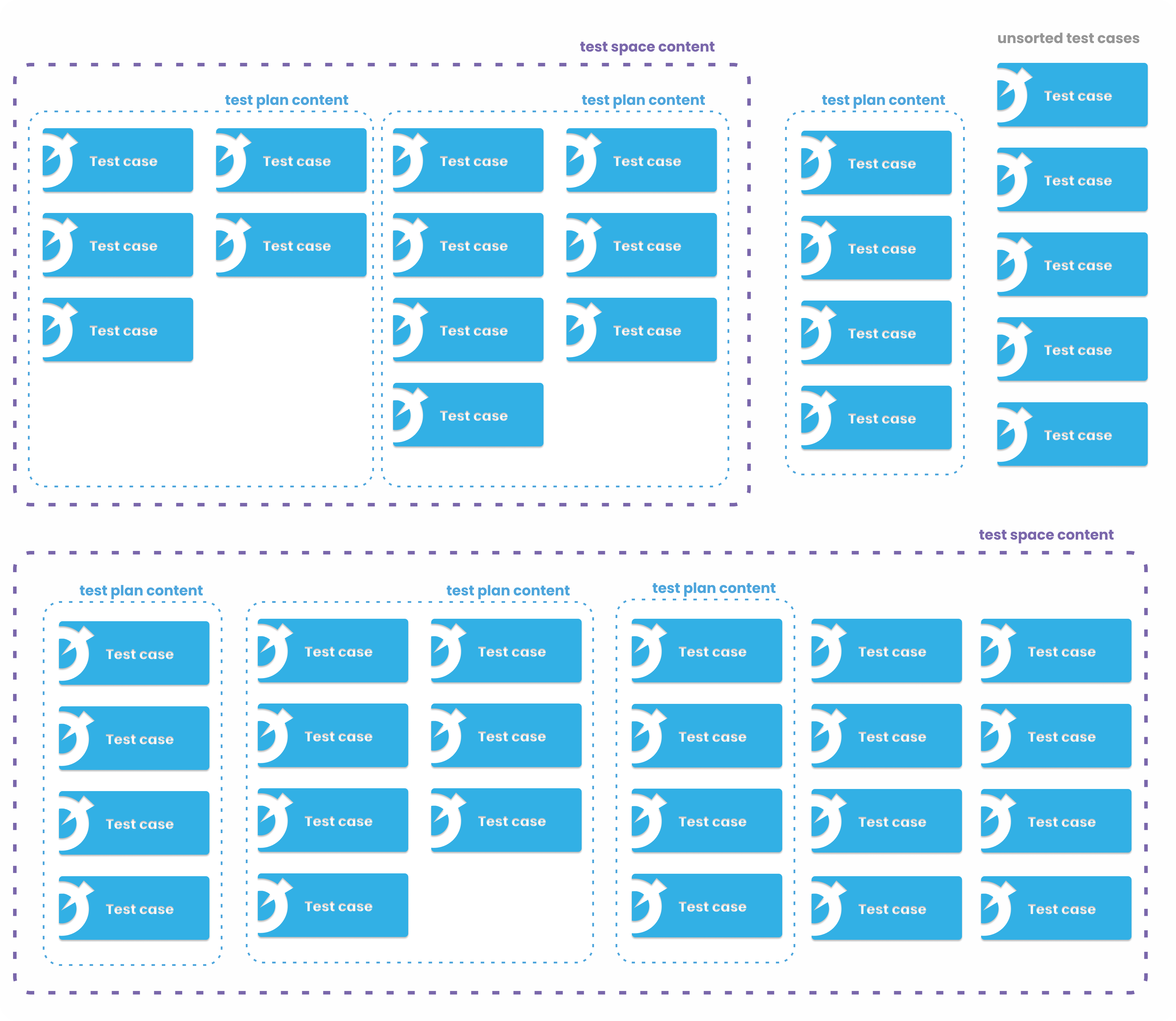 Test space = a lvl 2 "folder" or a "tag" that groups test cases and test spaces together. May contain test cases or whole test plans.